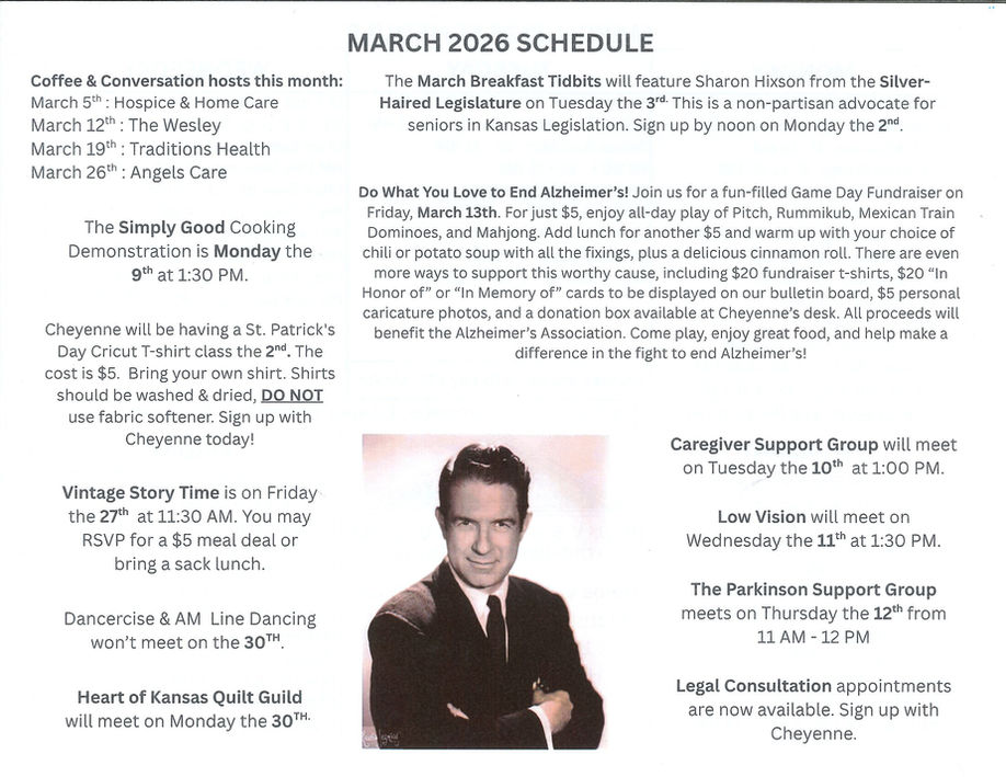 Click on either of the images below to view or print this month's schedule of activities and special events.